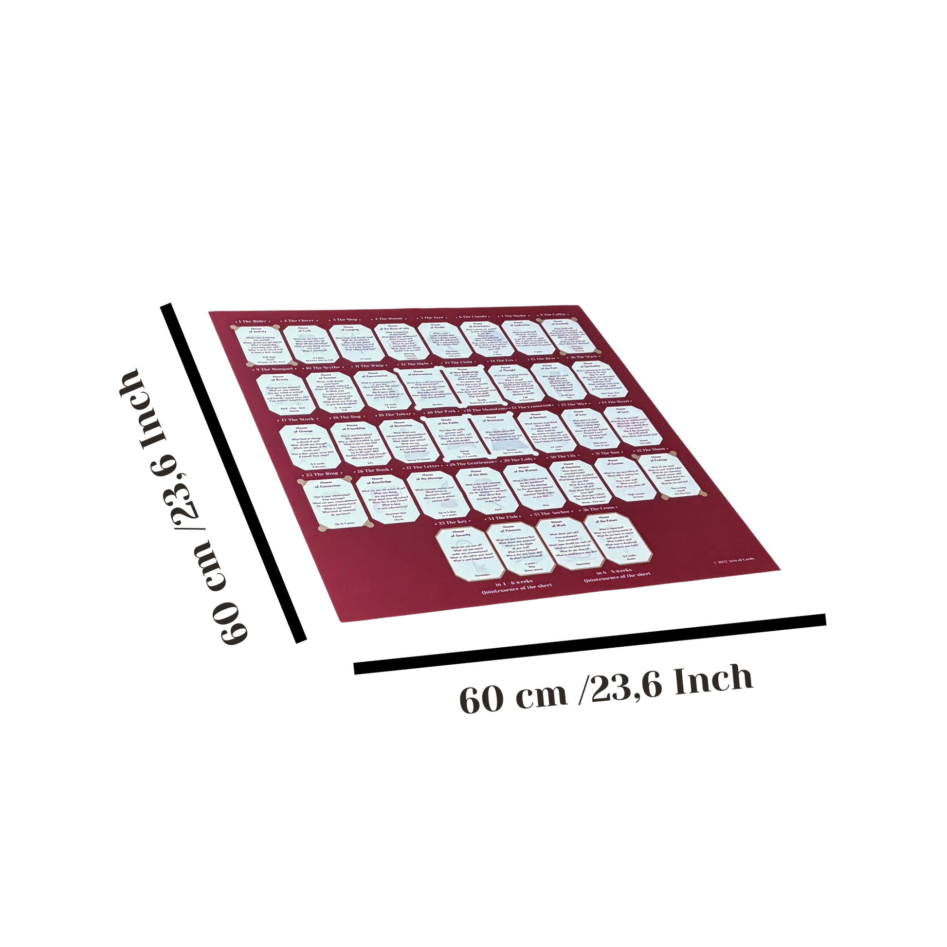 Laying the big board in Lenormand is a supreme discipline. However, it's easier with the spread in this set. The house asks you a question. These questions are written on the cloth. The card that falls on it gives you an answer. This gives you 36 statements on various topics in your life.