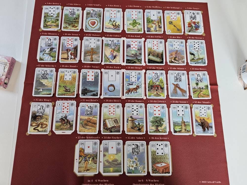 Lenormand reading cloth house table to learn 8x4+4 spread casting board